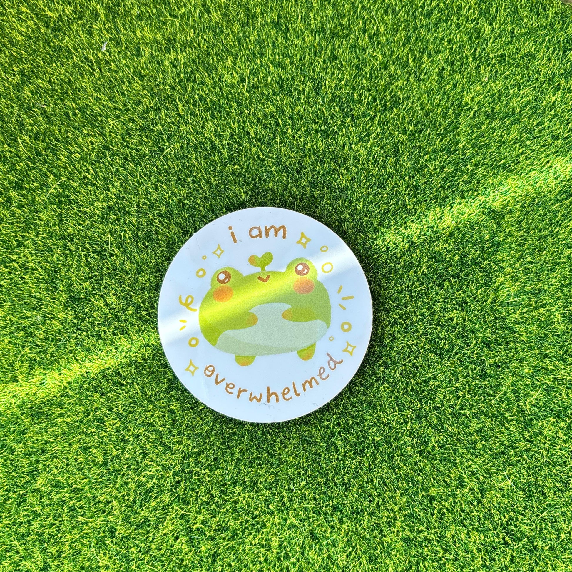 Featuring a sweet, blobby froggy with a sprout on their head and a whole constellation of ✨overstimulated vibes✨, this sticker is here for your laptop, journal, or water bottle — anywhere you need a soft little reminder that it’s okay to feel everything all at once.